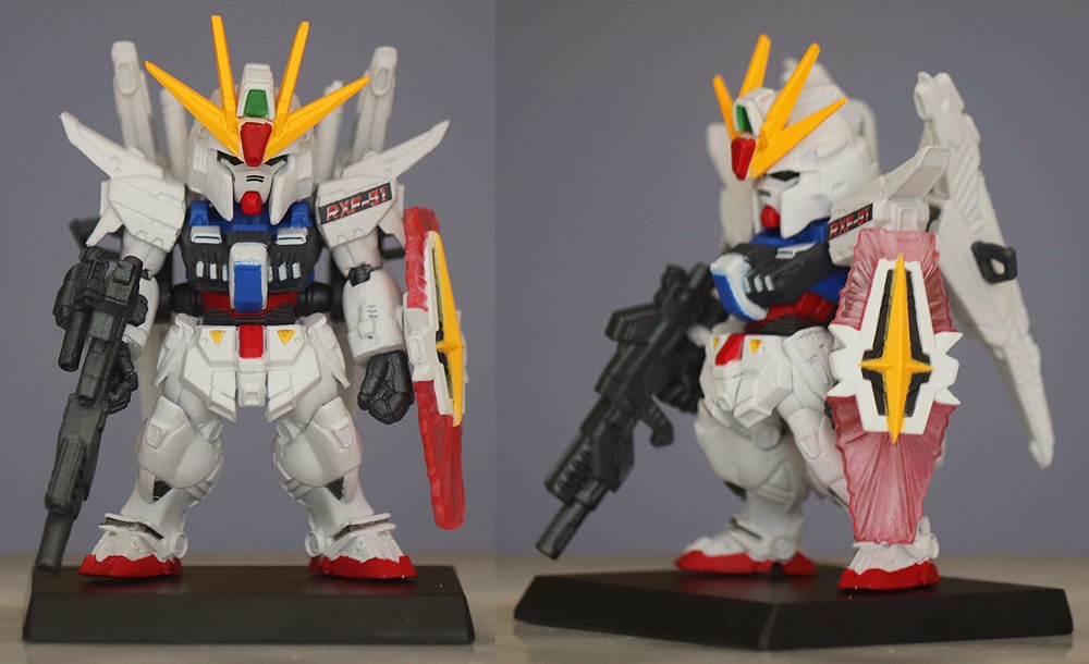 The trend with separately molded weapons continue, so you should be able to mess around a bit with the equipment loadout between the Gundam X figures although I didn't try it out myself (not wanting to touch and wear out the loose satellite cannon unnecessarily). Notice also the blue metallic finish on the beam rifle which is a nice touch. The only disappointment here is that the Divider shield is painted flat white on the back side but that is something we have to make do with in Converge.
