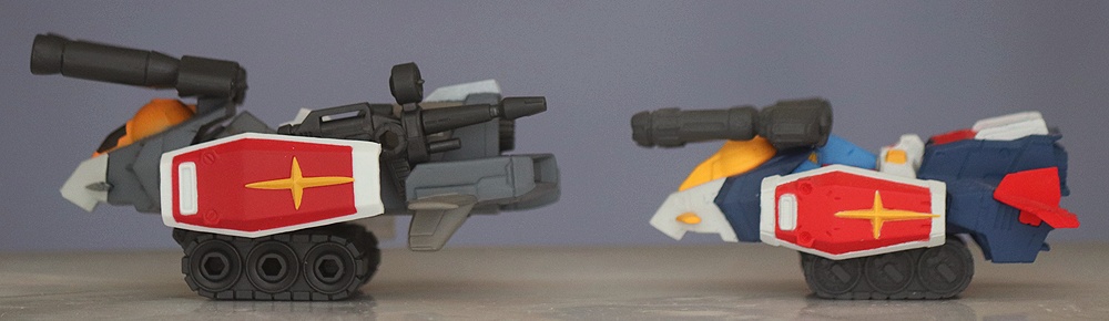 The new colour scheme is quite a treat and it figure looks great next to the G3 Gundam. As far as moving parts go you can rotate the gun turret and change the elevation of each gun separately.