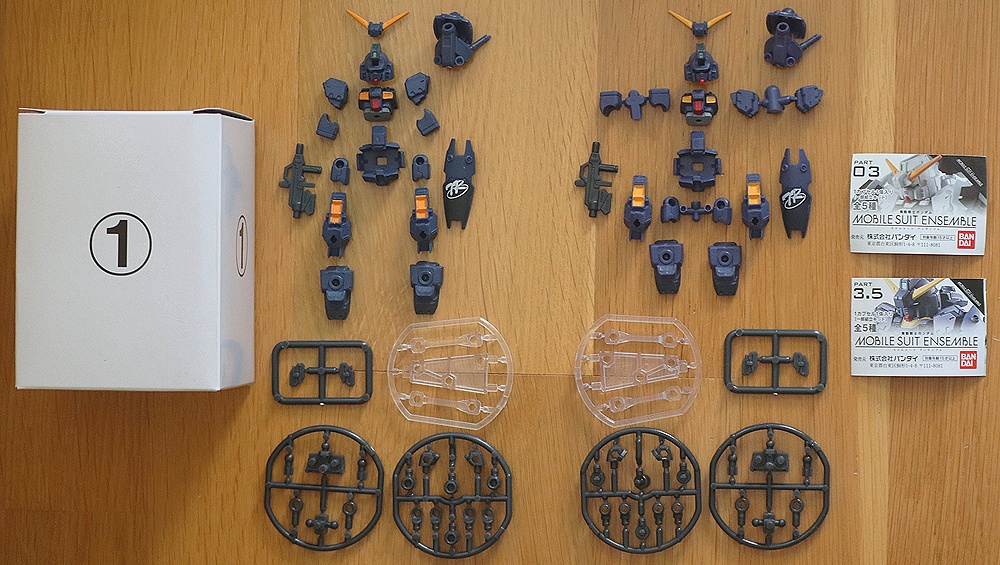 It was annoying that you didn't get enough Shield Booster parts in the retail Ensemble Weapon Sets so that you would have had to purchase two boxes for the luxury of having three Shield Boosters, three boxes if you wanted to use the black and white ones seen here. Then we see the equipment set that comes with this premium figure containing the exact number of Shield Boosters needed. The whole thing looks very suspicious to me.