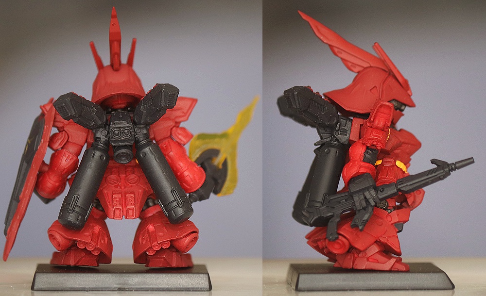Last up we have a Sazabi. I guess people keep voting for this thing like crazy but this seems like a lazy choice, we had one in the Char's History set as late as last year. Well, I guess f you don't fancy paying for CORE products here is your chance to get (another) Sazabi figure which is pretty much like the original one from 2016 except that... you guessed it the shield looks a bit messed up. Seriously, I have never seen a set with so many manufacturing flaws as this one. Poor effort.